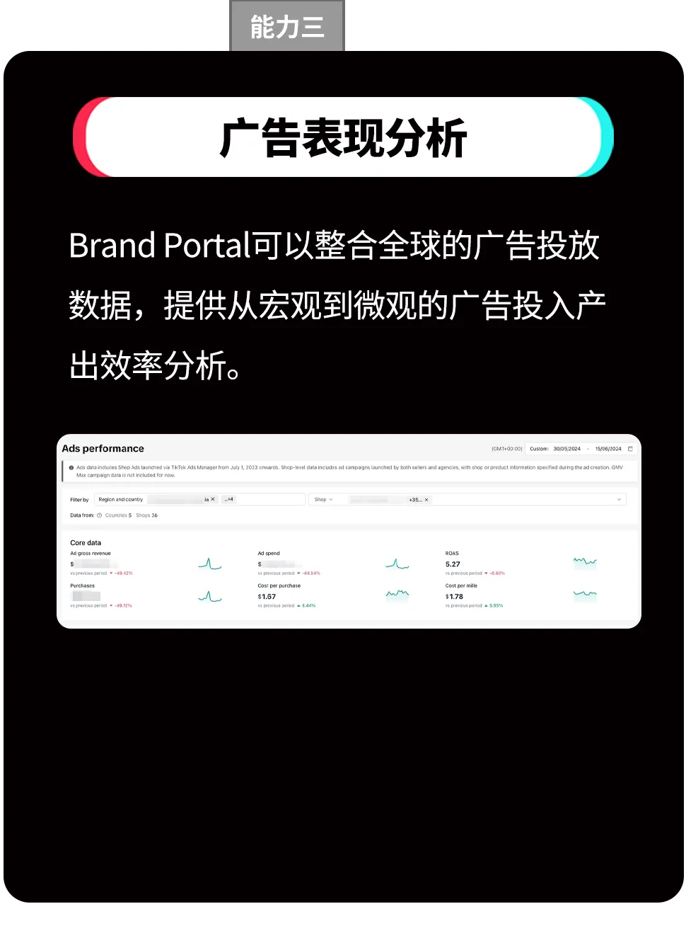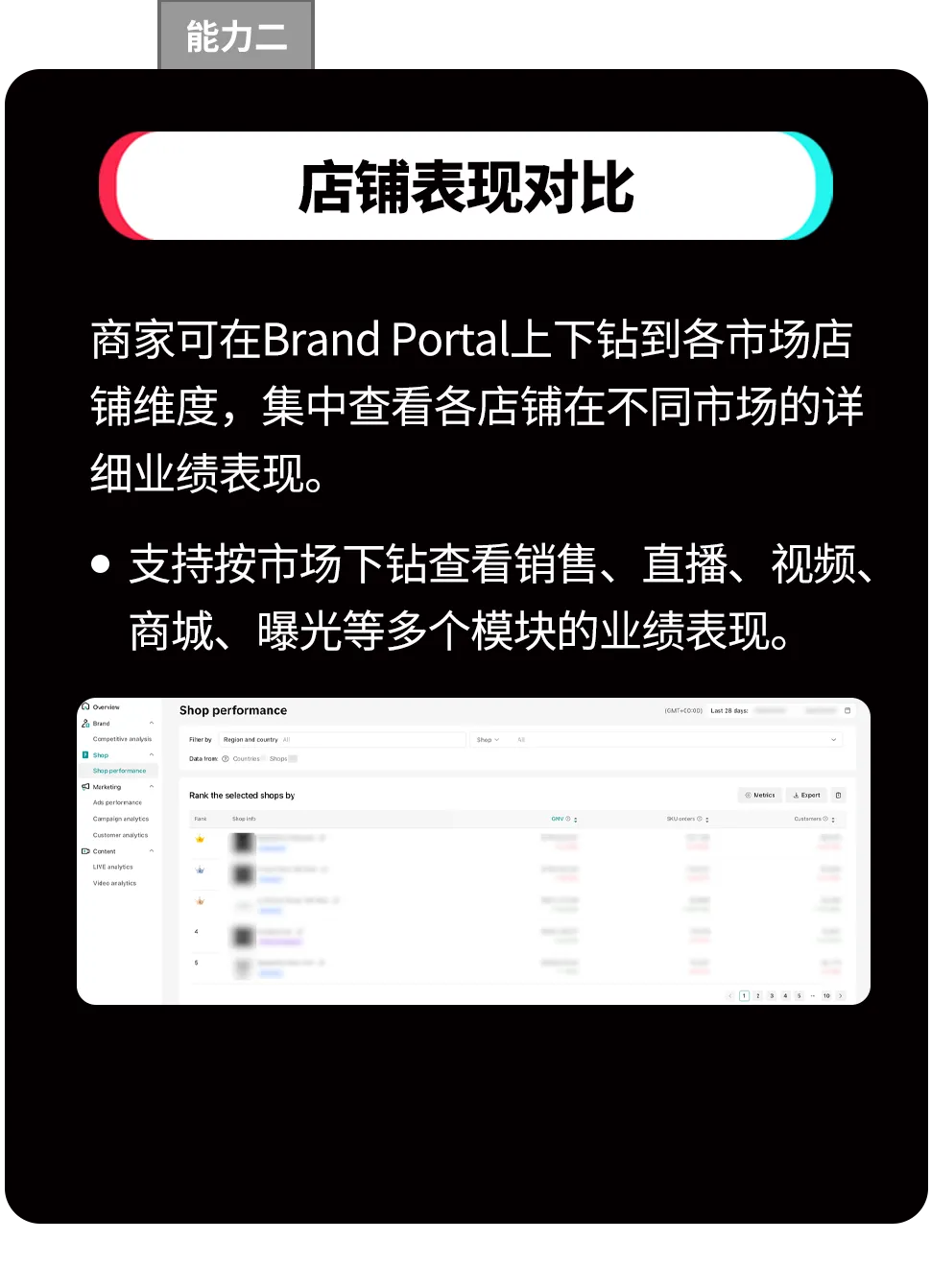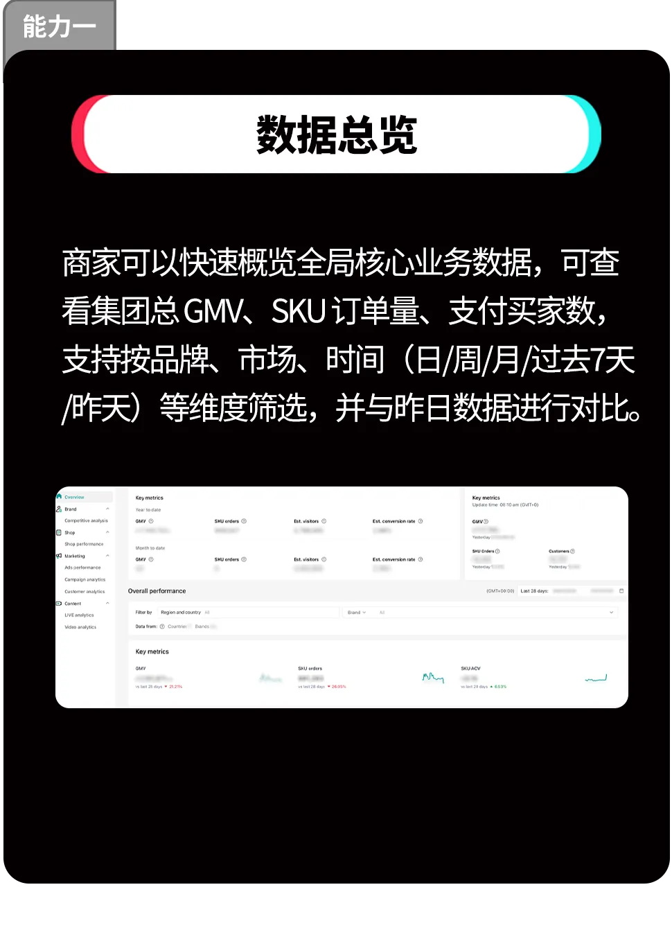 Brand Portal是专为跨国多店经营商家打造的集团化数据分析中心。它可以将商家在全球的所有店铺经营数据进行汇总展示,提供全局视角的业务洞察,帮助管理团队高效监控经营状态,做出更明智的战略决策。
