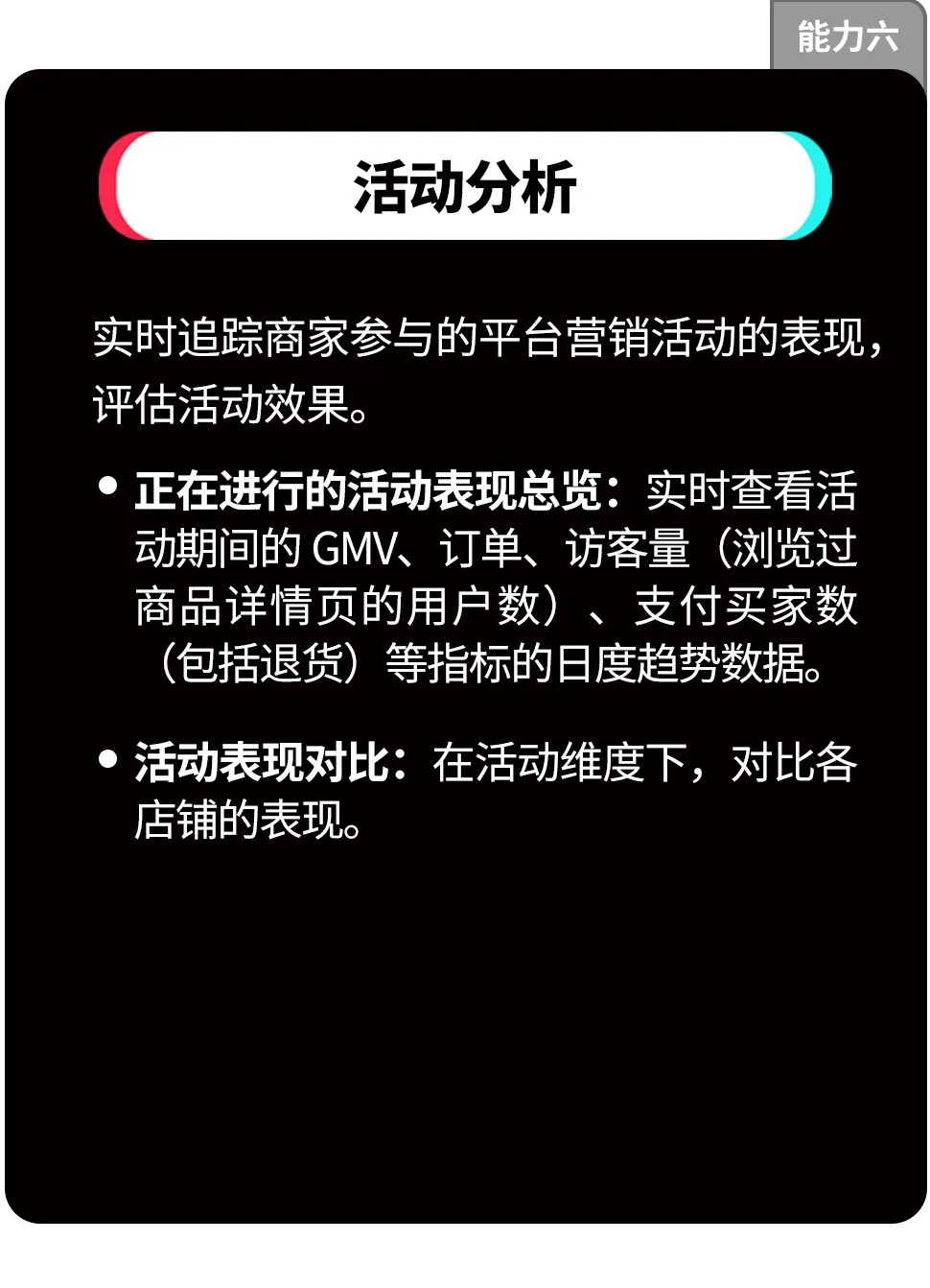 • 集团视角数据总览:一站式查看多个店铺的核心业绩指标(GMV、订单、买家数),快速掌握集团整体经营状况。