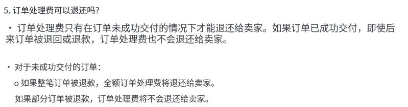 费用在订单成功交付结算时扣除,即便后续订单被退回或退款,该费用也不予退还;仅在订单未成功交付且整单退款时,卖家才能收回全额处理费,部分退款情况下仍不退还。