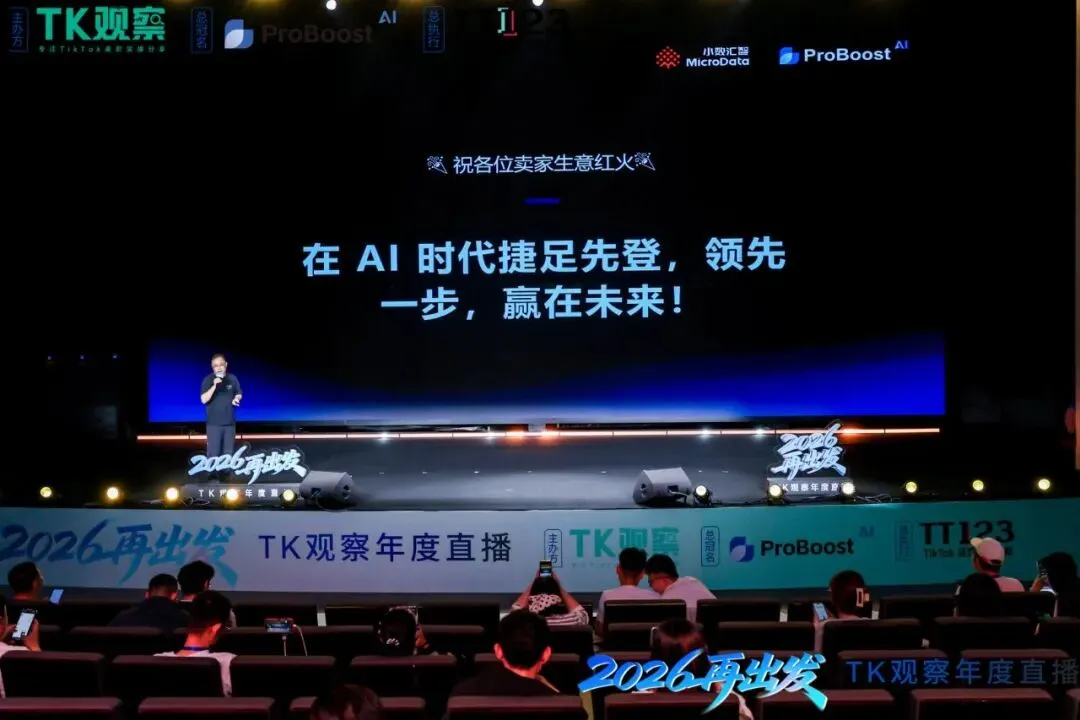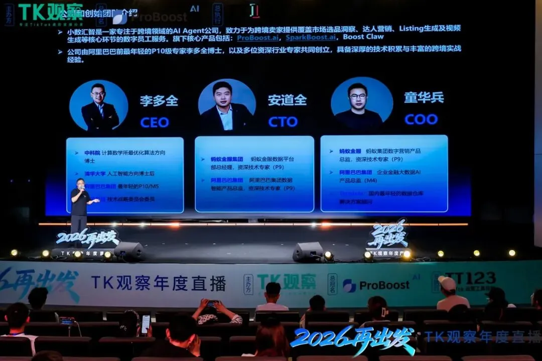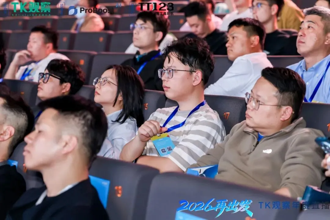 为此,TK观察携手ProBoost.AI、TT123共同发起了这场行业年度盛典——本次大会不仅邀请了200余位行业顶尖嘉宾亲临现场,更通过线上直播,链接屏幕前的每一位同行。愿所有出海人在匆匆赶路的间隙,得以回望来路的沉淀与感悟,共眺前路的曙光与可能,而后再次整装,并肩奔赴2026年的全新征程。