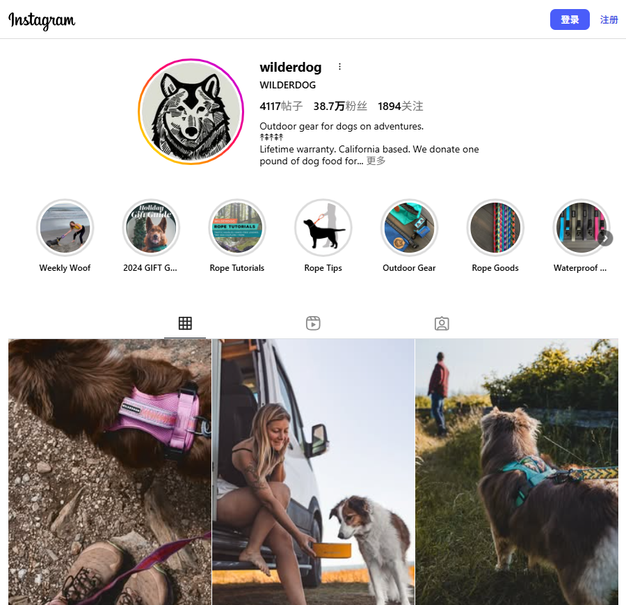 Wilderdog 深知最有说服力的代言人就是用户自己。他们在 Instagram 上创建 #wilderdog 话题,鼓励用户分享买家秀。