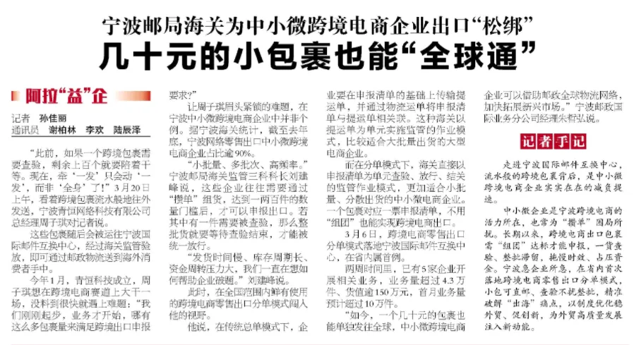 宁波跨境电商开启“分单模式”,一个小包裹也发