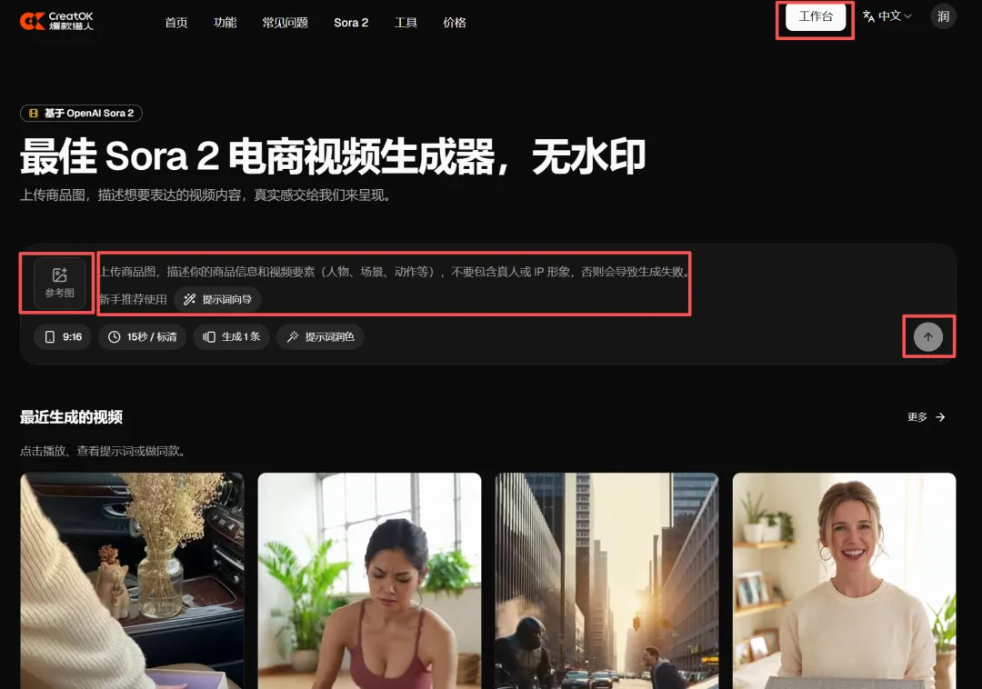 3、利用生成的脚本跟产品去到生成首页生成视频。