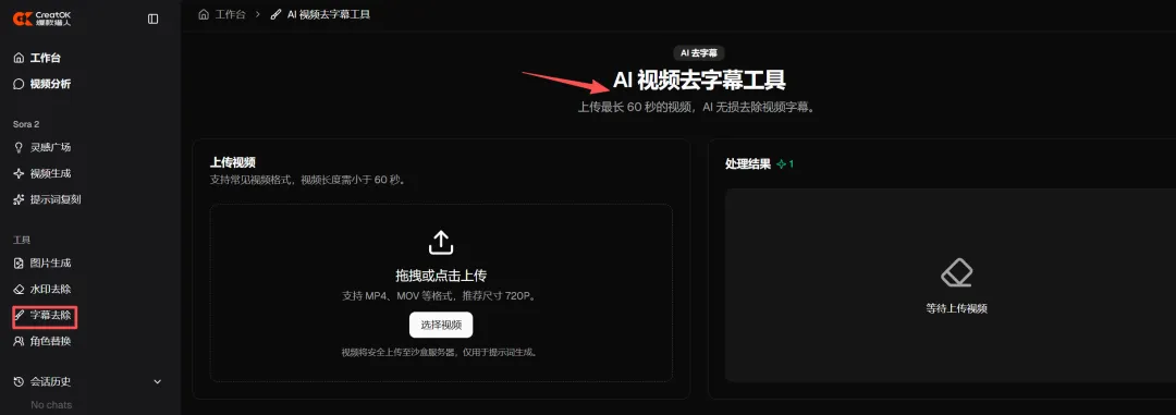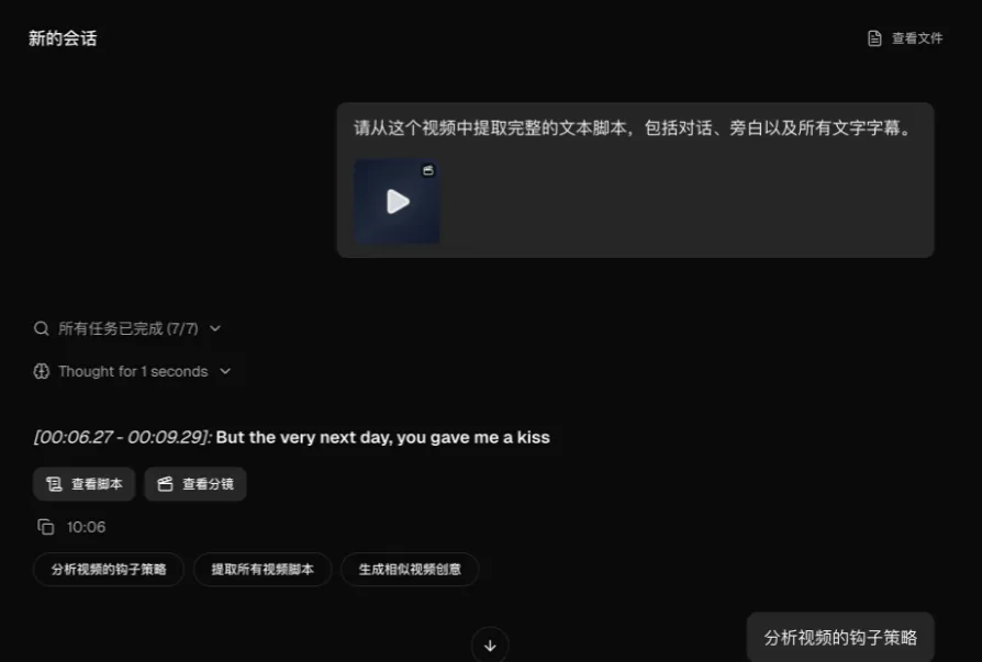 1、同样拖拉视频到对话框点击箭头生成会话。