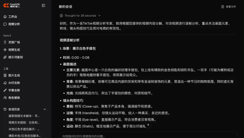 此功能为有编导拍摄经验的操作者来进行分析;可以根据分析出来的脚本去让拍摄团队进行二次加工,剪辑。(适用于有拍摄经验或者拍摄团队的客户使用)