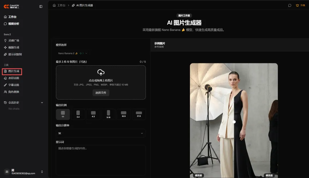 2.Nano banana2模型:消耗1积分,是市面上最好的生成软件模型之一。