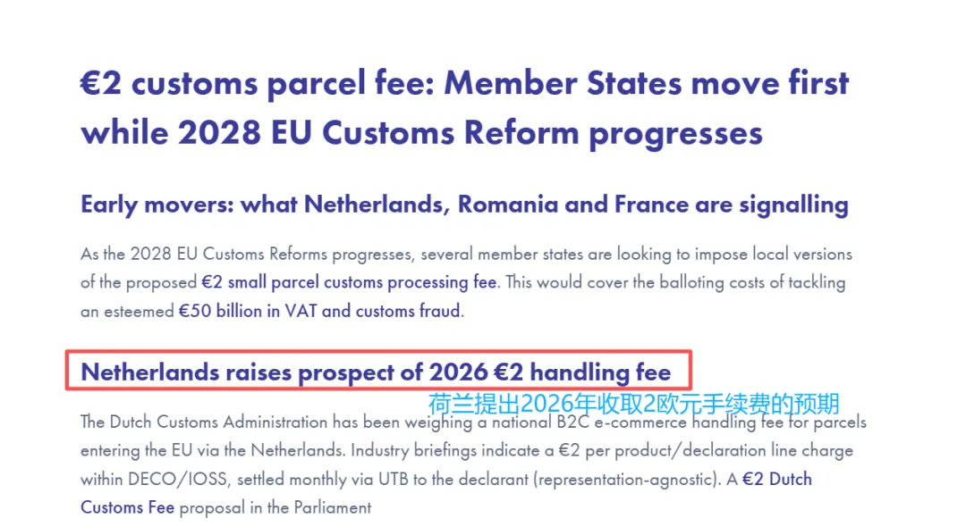 暴击中国卖家!荷兰对跨境小包加征2欧元“处理费”