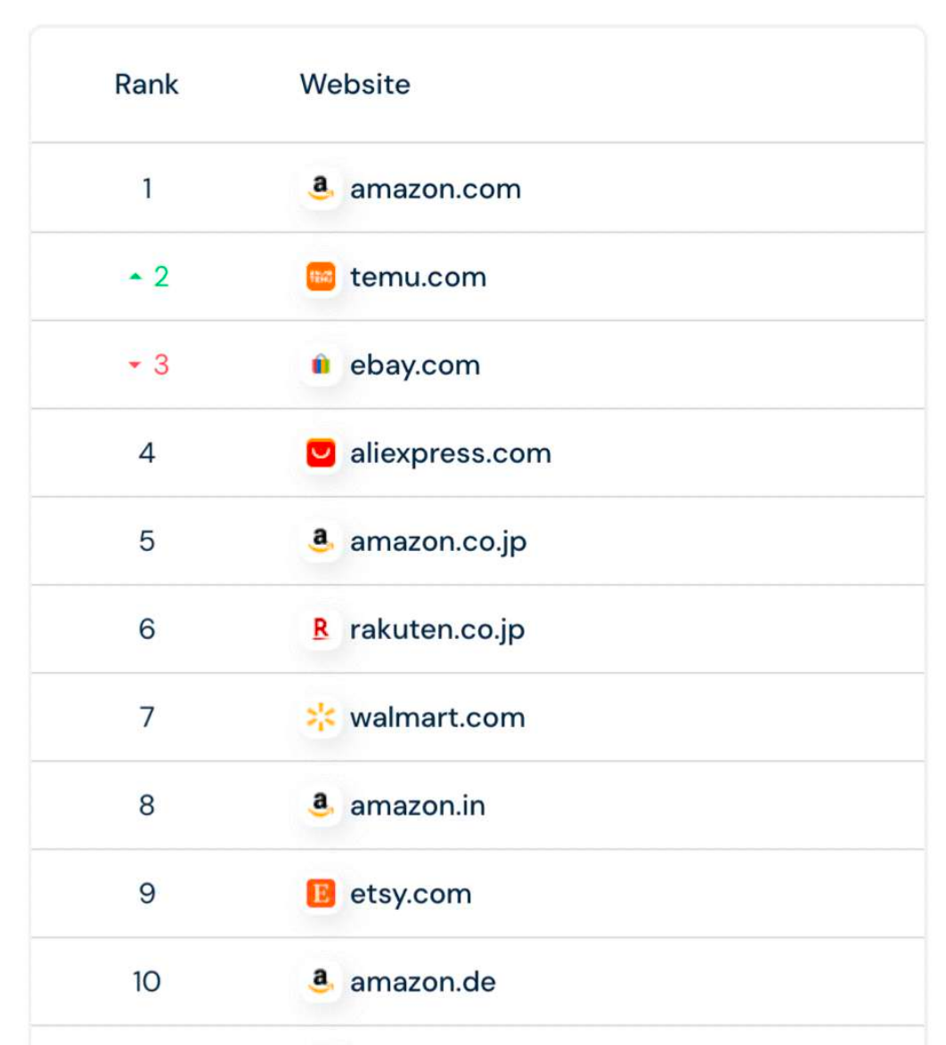 有数据进一步印证了这一趋势。2024 年,Temu 下载量环比增 69%,全球累计下载量近 9 亿次,登上了 40 多个国家移动应用下载总榜的首位,在全球电商应用下载榜以及增长榜上都荣获冠军。目前,Temu 已经超越 eBay 成为全球访问量第二大的电商网站。