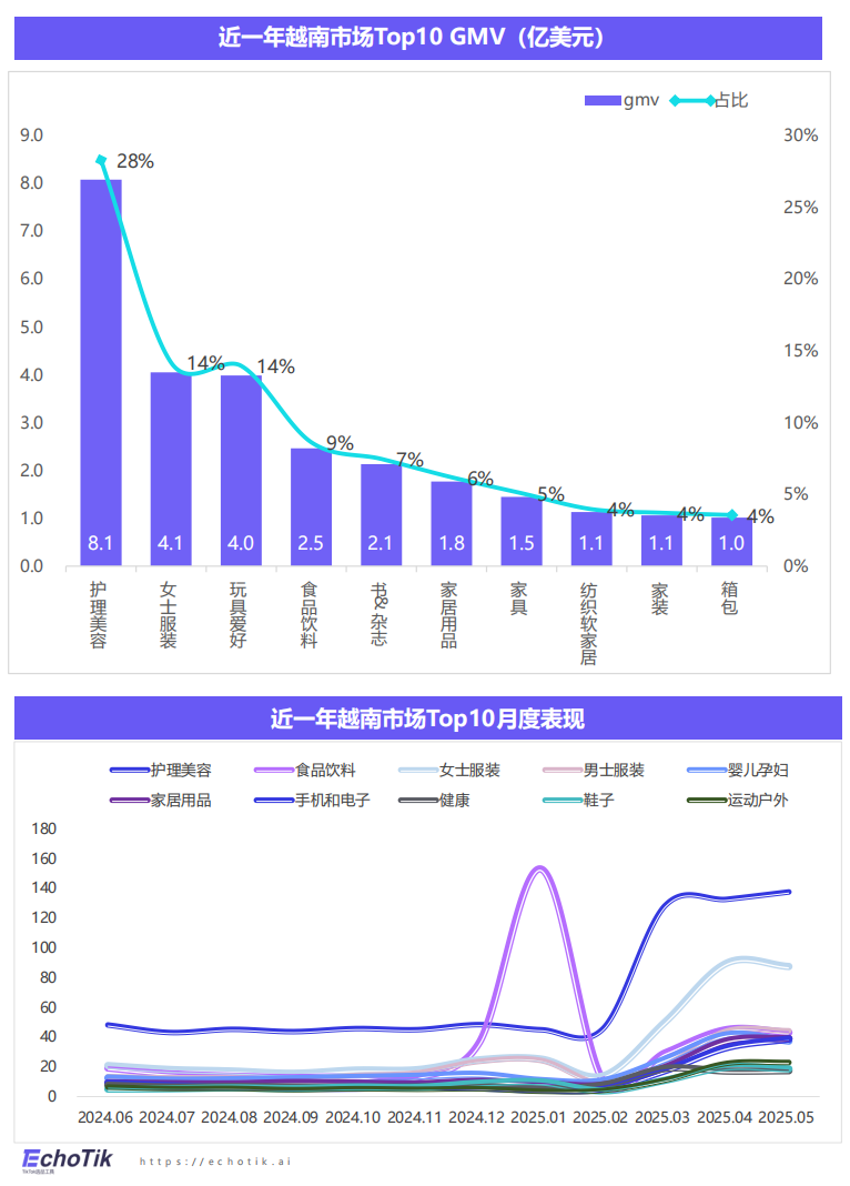 从分月趋势看,泰国站点在上半年出现双峰走势,单月 GMV 峰值接近 1.6亿美元,引领东南亚整体走势;菲律宾市场在节日与爆款驱动下,单月峰值突破 8200万美元,但波动性较大;越南则保持稳步攀升态势,近期单月 GMV 接近 8000万美元,增速突出。