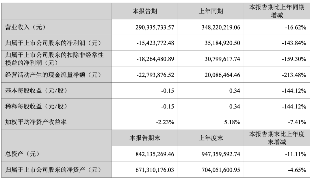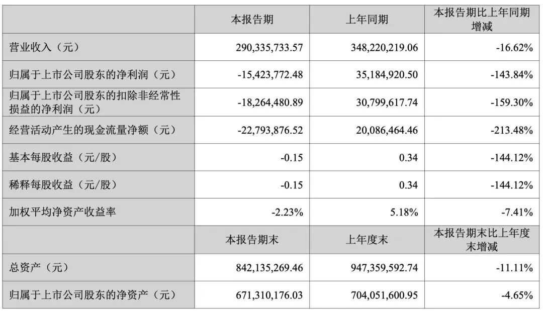 根据浙江开创电气的 2025 年半年报,今年上半年,开创电气营收为 2.90 亿元,归属于上市公司股东的净利润 -1542 万元,经营活动产生的现金流量净额也由正转负。