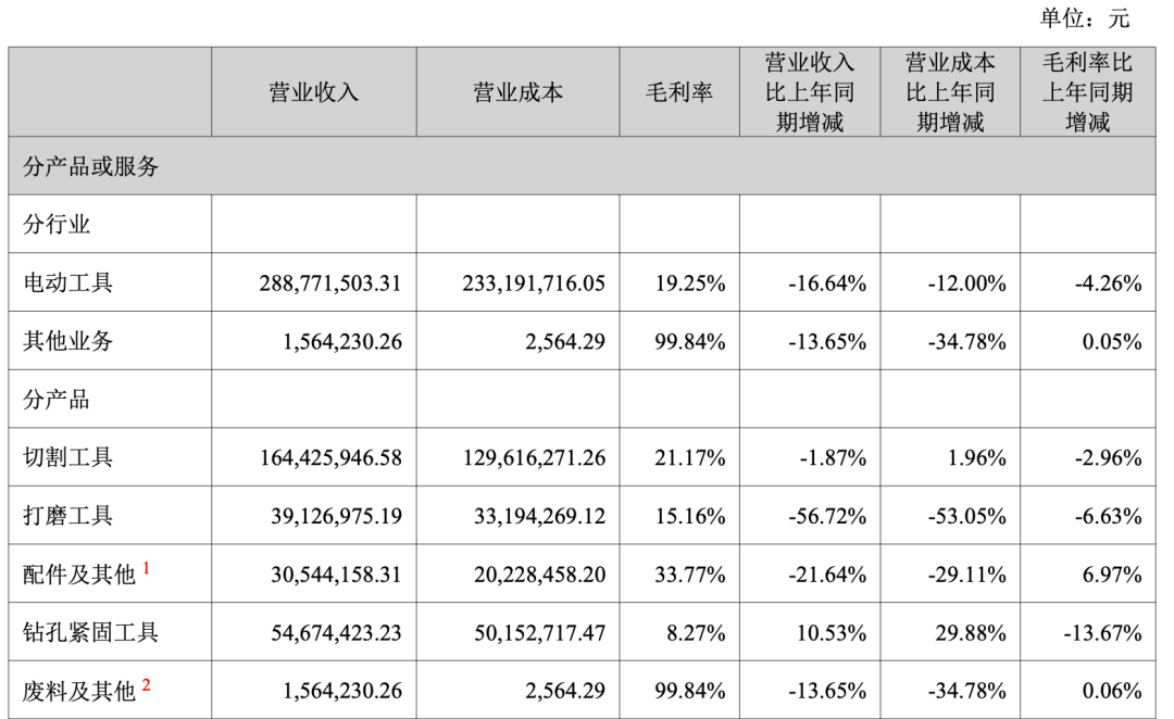 2025 年上半年,切割工具是公司收入贡献最高的产品,营收为 1.64 亿元,收入和去年基本持平,其次是打磨工具,营收为 3913 万元,但打磨工具业务同比下滑了 56.72%。