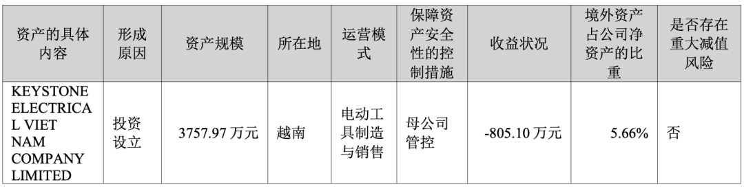 开创电气在越南投资的生产企业,资产规模为 3758 万元,上半年仍处于亏损状态。