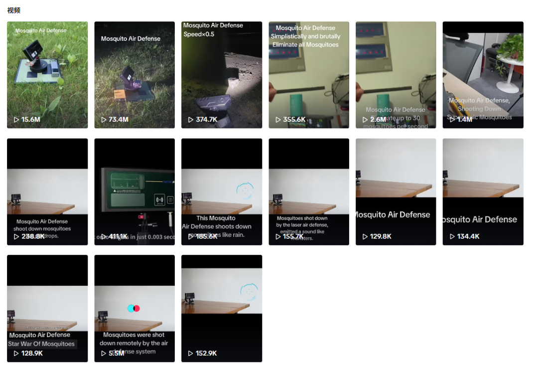 其中尤以 TikTok 传播效果最为显著——截至目前,该账号共计发布 15 条视频,便斩获了 760 万个点赞、11.6 万粉丝,视频播放量普遍达到数十万到千万级别。其中,一则在野外测试灭蚊性能的视频点击量飙升至 1560 万,收获 6838 条评论,广受热议。