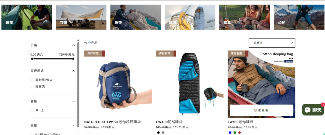 2016 年启动全球化战略,以欧美为跳板,逐步渗透东南亚、中东等新兴市场。2022 年完成近亿元融资后,海外销售占比提升至 20%,产品热销 72 国,单款徒步睡袋年销 50 万条,成为亚马逊 TOP3 户外品牌。