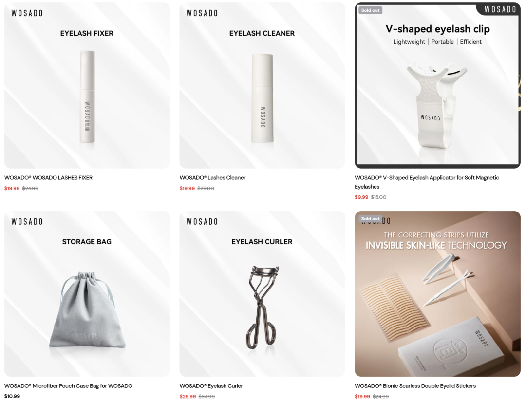 同时,WOSADO 还通过睫毛清洁器等护理产品的开发,围绕核心品类构建起完整的消费闭环,用不断扩大的 SKU 组合来进一步覆盖市场。