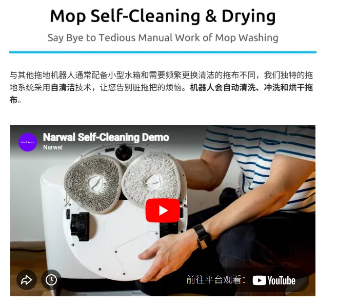 当时的扫地机器人,无论多智能,都逃不过一个痛点:用户拖完地,还要手动清洗脏拖布、更换污水,反而增加额外负担。云鲸精准抓住这个核心,将“自动洗拖布”作为最强心智锚点,反复强化“把最脏、最烦的活自动化”的产品价值。