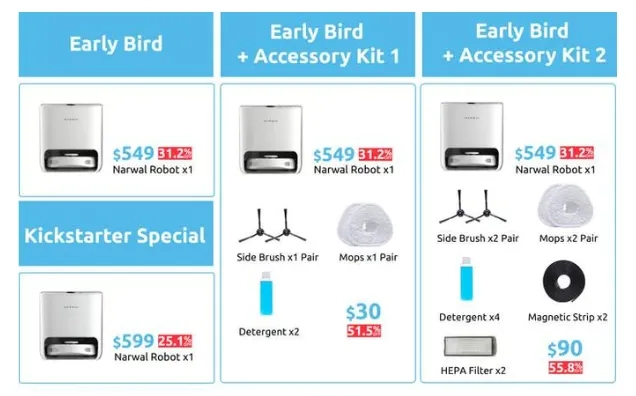 云鲸的众筹定价,藏着高端品牌的底层逻辑:先锚定799美元的零售定价,再推出Early Bird549美元(直降31.2%)、Super Early Bird直省375美元(折扣37.5%)的档位,制造“限时划算”的心理落差,既保证了众筹爆发力,又守住了品牌调性,为后续全球零售价格体系奠定基础。