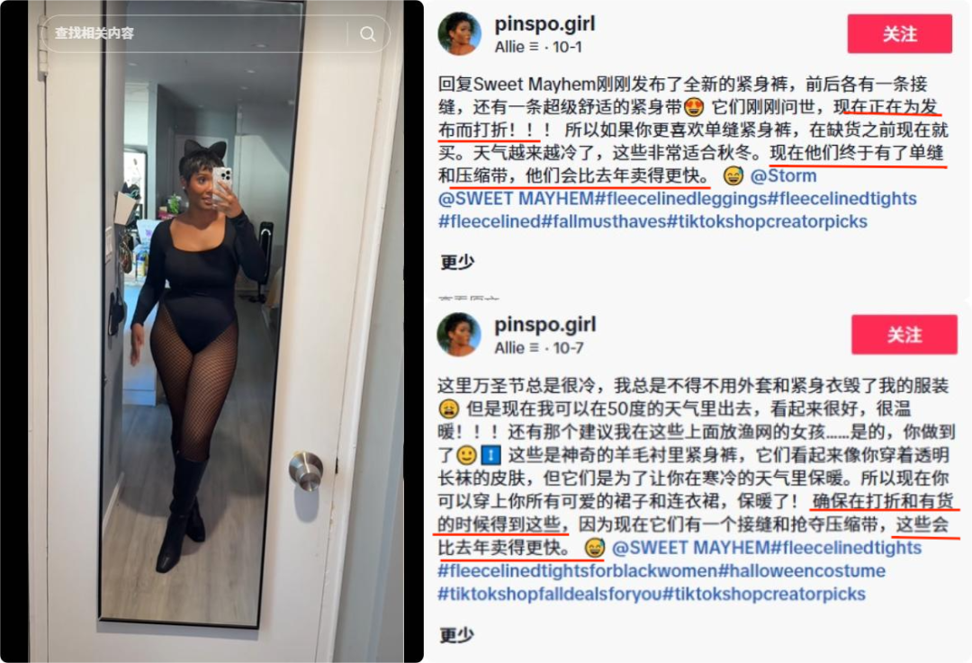 她在视频中除了对保暖裤的特点展示之外,也会反复提到“卖的很快”“马上没货”“趁着打折赶紧买”这类话术,营造一种即将售空的氛围,可以进一步提升视频的带货转化率,让爆款的销量持续冲高。