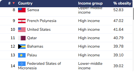 根据数据显示,美国的肥胖率在高收入国家里排名非常靠前,男女肥胖率超 40%。简单说,每 10 个美国人里,至少 4 个人需要穿大码服饰,这可是个实打实的刚需市场。