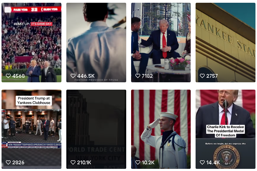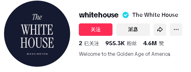 值得注意的是,特朗普本人在大选期间就曾通过 TikTok 账号吸引大量年轻粉丝的支持,而白宫也于今年 8 月 19 日正式开设了官方 TikTok 账号,新账号被定位为“高效传达总统政策”的渠道,开通短短半天时间便收获了超 5 万粉丝,白宫新闻秘书莱维特表示,特朗普政府将通过 TikTok 等平台向更多受众传递特朗普的执政成就,与受众进行沟通。截至发稿,该账号已有超 95 万名粉丝,基本保持日更的节奏,活跃度极高。