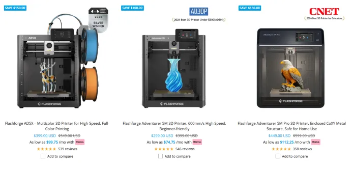 Flashforge 针对不同市场,官网搭建了美、欧、亚等多个本地独立站,支持本地币种、支付方式和语言,提升了物流与售后效率。