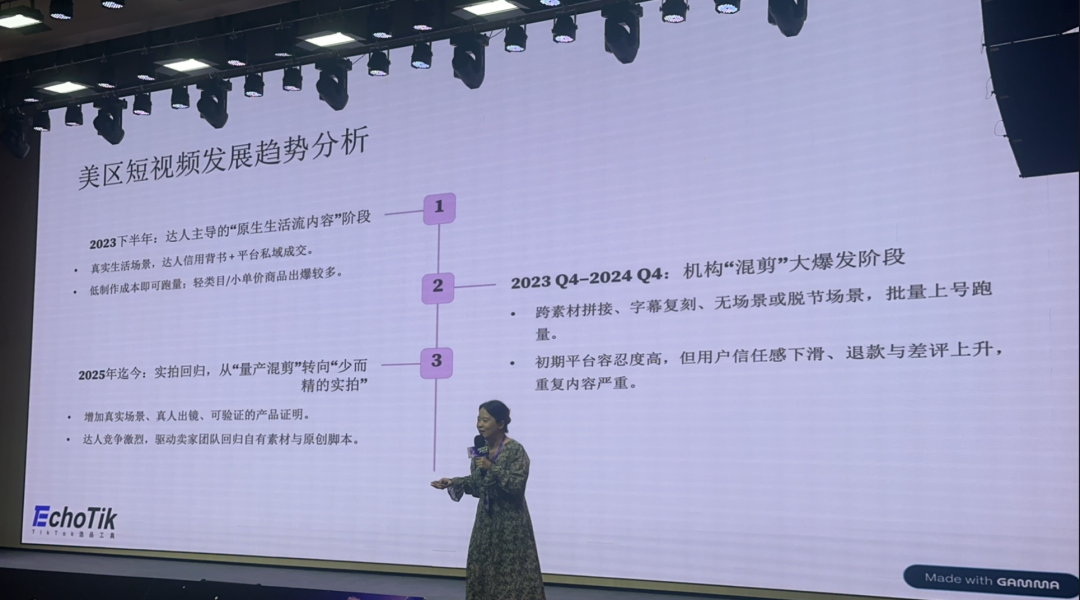 2023 下半年,美区短视频进入达人主导的 “原生生活流” 阶段 。达人扎根真实生活场景,用 “信用背书 + 私域成交” 的组合拳突围。轻成本、轻类目、小单价商品成爆款常客 —— 拍一段厨房小工具的真实使用场景,搭配达人自然安利,就能轻松撬动流量。这背后,是用户对 “真实感” 的强需求,也给中小卖家留下 “低门槛入局” 的窗口。