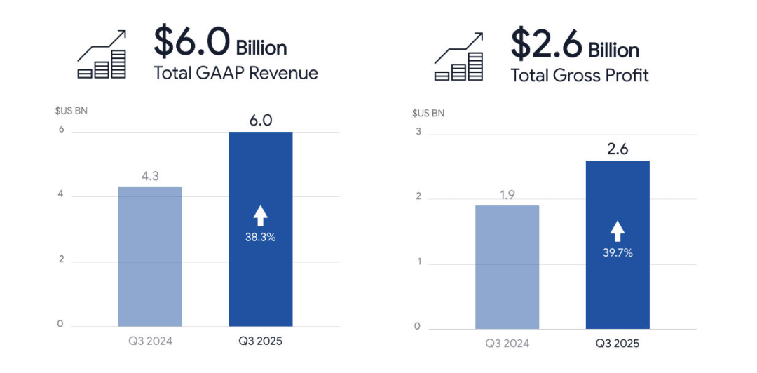 ·集团总 GAAP 收入达 60 亿美元,同比增长 38.3%;