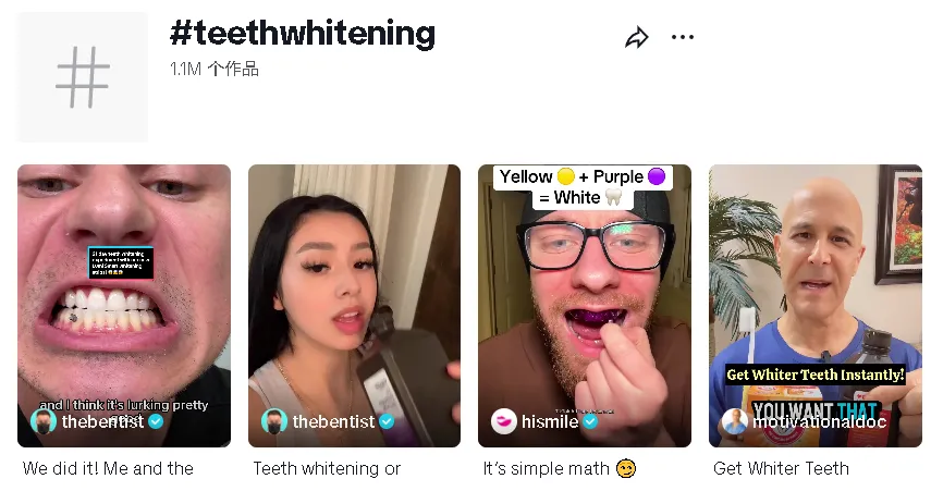 放眼当下,牙齿美白早已早已不是小众审美选择,而是欧美年轻人的社交刚需。一口亮白牙齿直接关联约会、逛街、面试、日常出镜等场景,在 TikTok 平台上,#teethwhitening 相关话题长期保持高热度,背后是庞大且持续增长的消费市场。