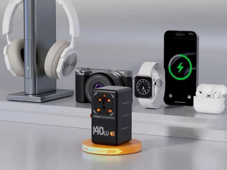 Tessan 的 WTA 系列旅行适配器,便采用 GaN 材料,使设备同时兼顾小巧、功率大、发热少,提升了充电效率,为手机、笔记本、相机等数码设备实现高效快充。