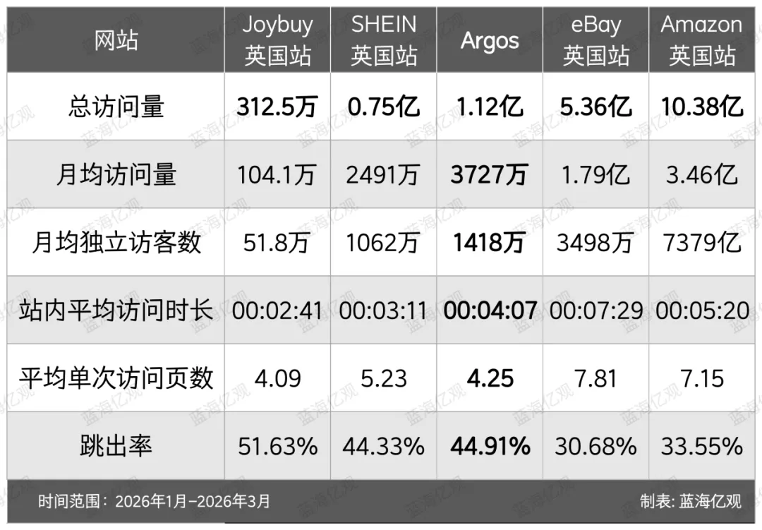 近 3 个月(2026 年 1 月-3 月),Argos 网站总访问量约 1.12 亿,仅次于亚马逊和 eBay 的英国站点。目前,安克创新、正浩科技(EcoFlow)、影石创新(Insta360)等已在 Argos 销售。