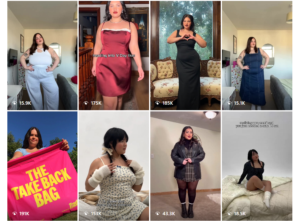 @cidercurve:专注为身材丰满、有大码服装需求的女性服务。账号围绕曲线系列和大码产品展开,提供适合该群体的时尚穿搭建议与产品展示,让大码女性也能轻松找到时尚灵感,满足其对美的追求,填补市场细分领域空白,拓展品牌受众范围。
