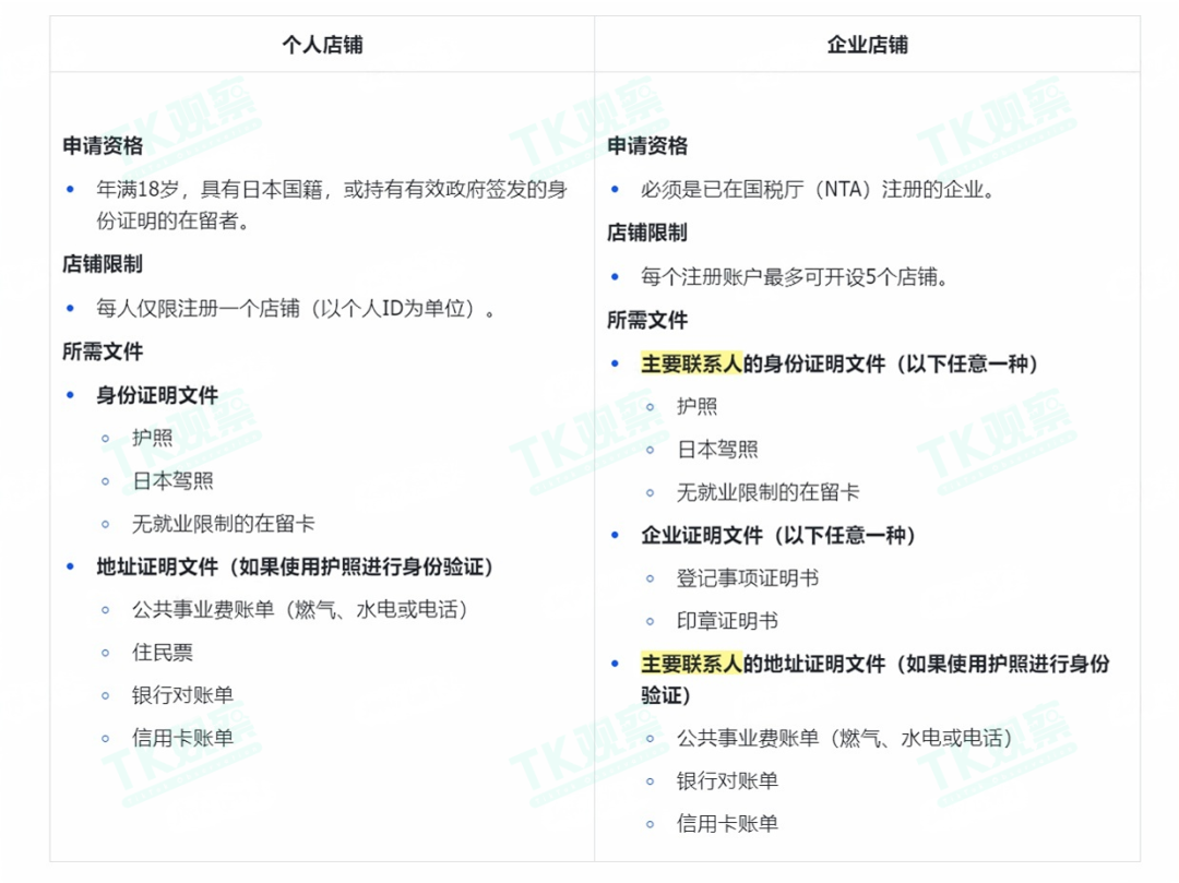 据TK观察了解,TTS日本首批开放入驻的卖家类型为本土企业店铺和本土个人店铺,具体的要求可参考下表。其中虚拟产品、二手电脑手机、宠物健康护理类产品、食品饮料等11类产品在禁售类目中。