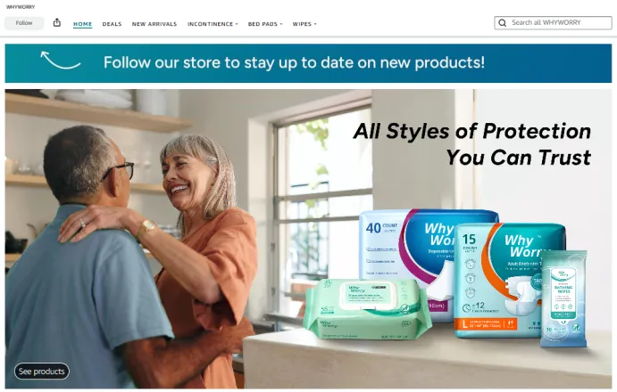 2024 年,可靠正式成立跨境电商团队,推出为“出海”打造的新品牌 WhyWorry,致力于将成人失禁护理产品销售至欧美等海外市场。