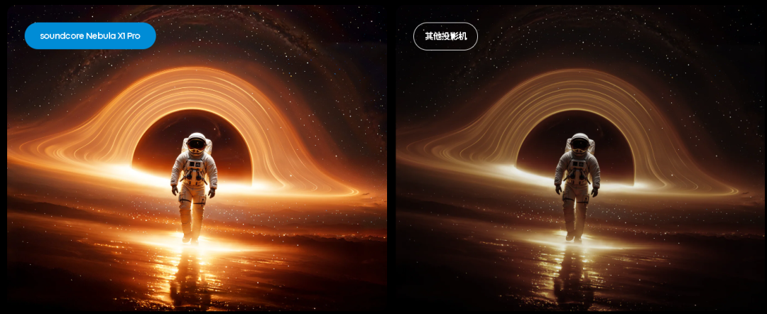 它不仅延续了 Nebula 在影像领域的高亮度与超清画质优势,也融入了 Soundcore 在声学调校上的深厚积累,通过一体化设计,X1 Pro 实现了画面与声音的深度协同。这种深度融合,不仅突破了传统投影产品的性能边界,也进一步放大了品牌的创新势能。