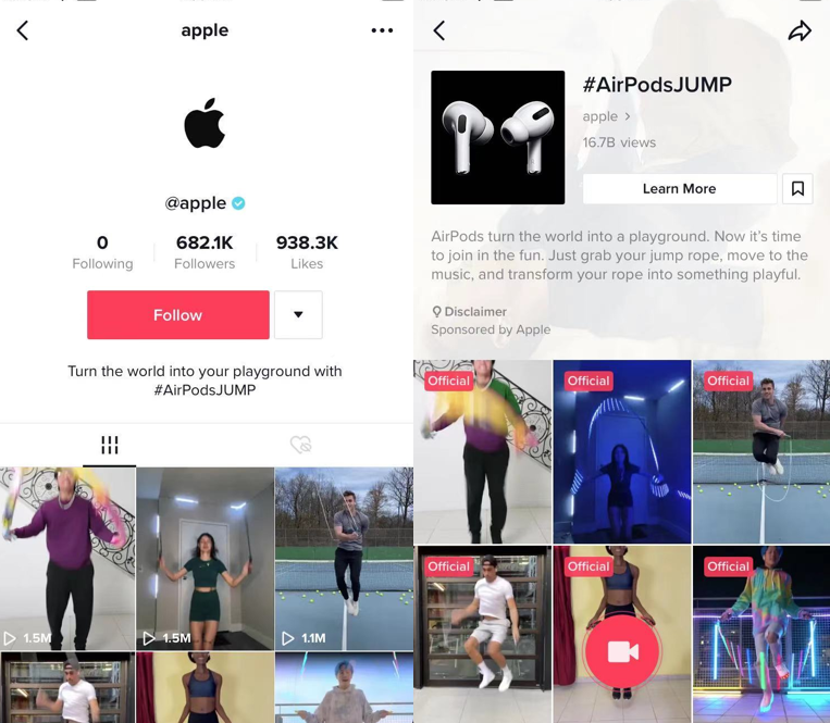苹果在3月15日,发起了#AirPodsJump#标签挑战赛,进一步推动了产品影响力及净销售额的增长。