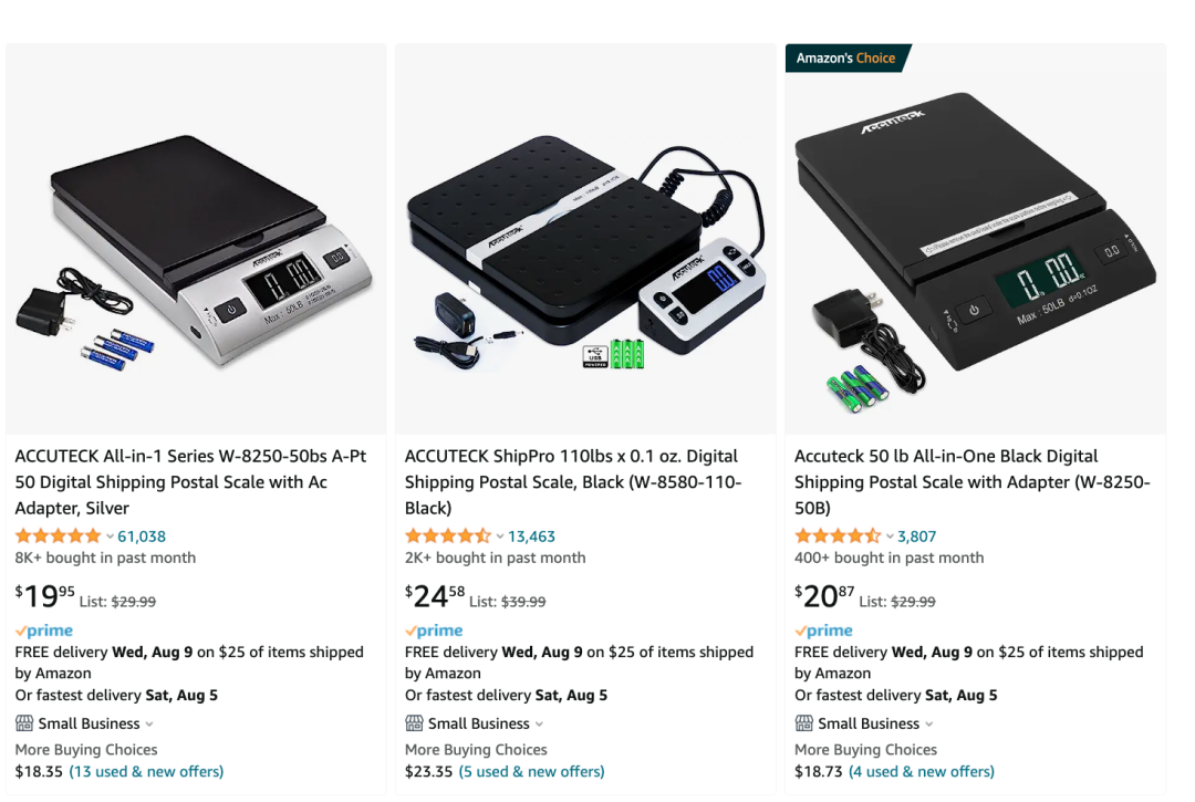 在亚马逊,Accuteck 和 Weighmax 品牌的电子秤,都是 BestSeller 级别的品牌产品。一些热卖单品,评论过万,月销数千个。