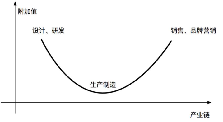 图/产业链的微笑曲线中生产制造处于“谷底”