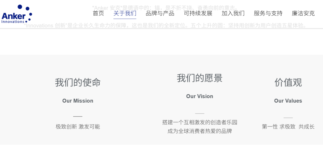图/安克的企业使命及价值观