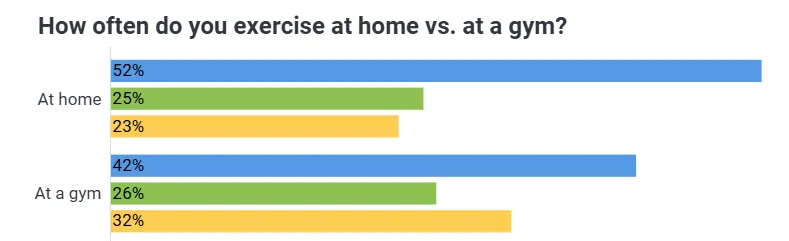 MERACH 的崛起,首先源于对赛道趋势的精准把握与扎实的产品力。疫情后,欧美用户对居家健身的接受度明显提升。CivicScience 调研显示,52%的美国成年人表示会定期在家锻炼,而定期去健身房的比例为28%;