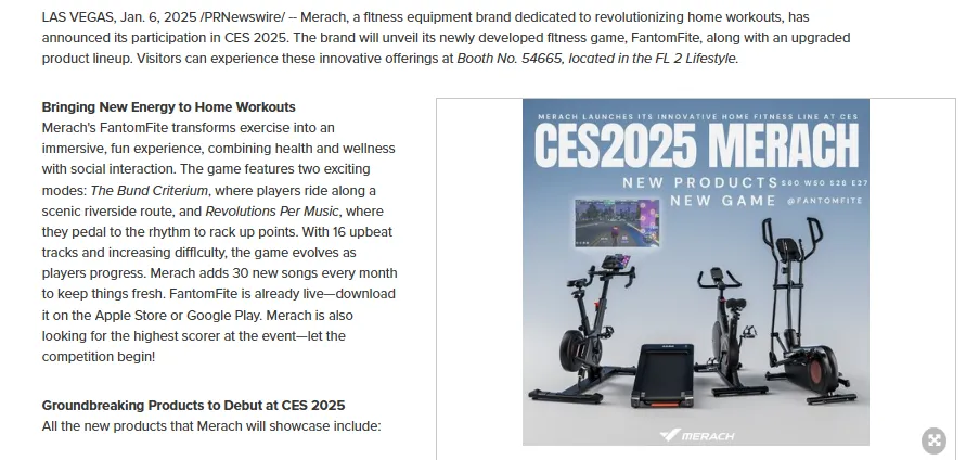2025 年亮相 CES 展会,展示健身游戏与升级产品线,精准匹配居家轻运动核心场景;
