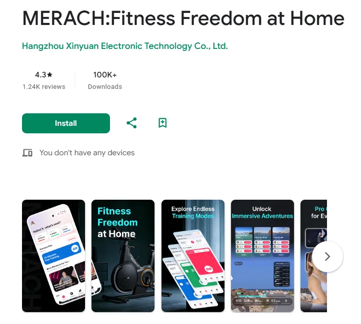 但对 MERACH 来说,用户连上 MERACH App,才是生意的真正开始。目前 MERACH App 在 Google Play 端已收获 100K + 下载量、4.3 星评分,支持全品类设备连接、数据记录,CES 发布的 AI 教练、智能调节等核心功能,也全部落地到 App 中实现,真正把硬件做成了流量入口,用软件构建了用户粘性与不可复刻的品牌壁垒。