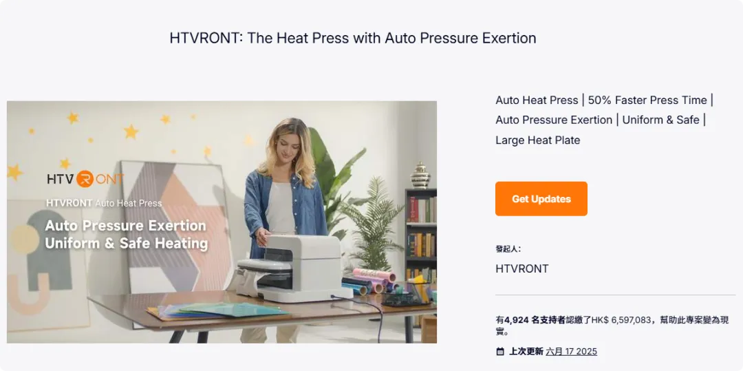 他们推出的全自动热压机,主打一键操作、智能温控和轻便设计,彻底颠覆了市场认知。结果远超预期:产品迅速吸引了近 5000 名支持者,首月销售额便突破 100 万美元。
