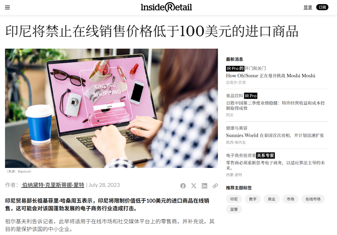 对于取消进口关税豁免,泰国本土企业是乐见其成的。泰国电商专家甚至建议应该效仿印度尼西亚的模式,禁止在网络平台上销售价格低于 100 美元的进口产品,以保护本地生产商并提高进口产品标准。