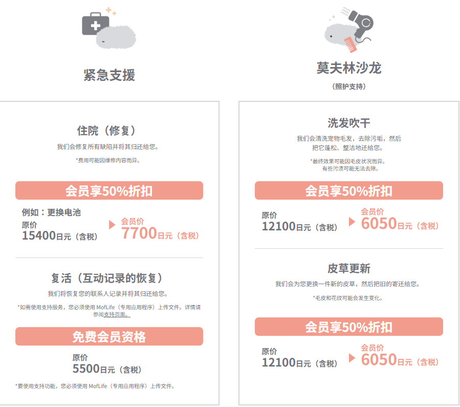 官方推出了名为 Club Moflin 的付费会员(年费 6600 日元),会员可以获得定期的健康检查,甚至包括一个听上去有点科幻的功能: