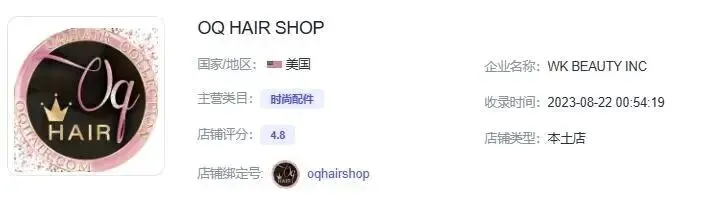 这款爆品源自 OQ HAIR SHOP 本土店,背后是深耕跨境假发赛道超 10 年的美国注册企业 WK BEAUTY INC,其旗下运营 CurlyMe Hair、OQ Hair 等知名品牌,专注真人发制品研发生产,是北美市场极具影响力的东方发制品供应商,2024 年 OQ Hair 曾登顶 TikTok Shop 假发类品牌榜榜首。