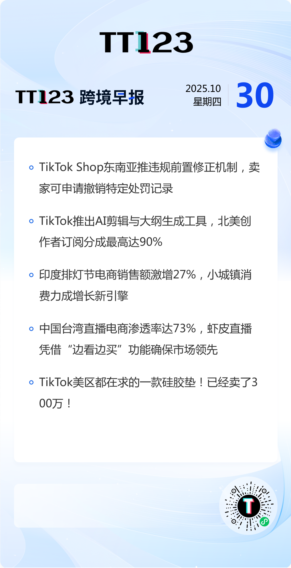 追踪订阅 TT123 跨境早报