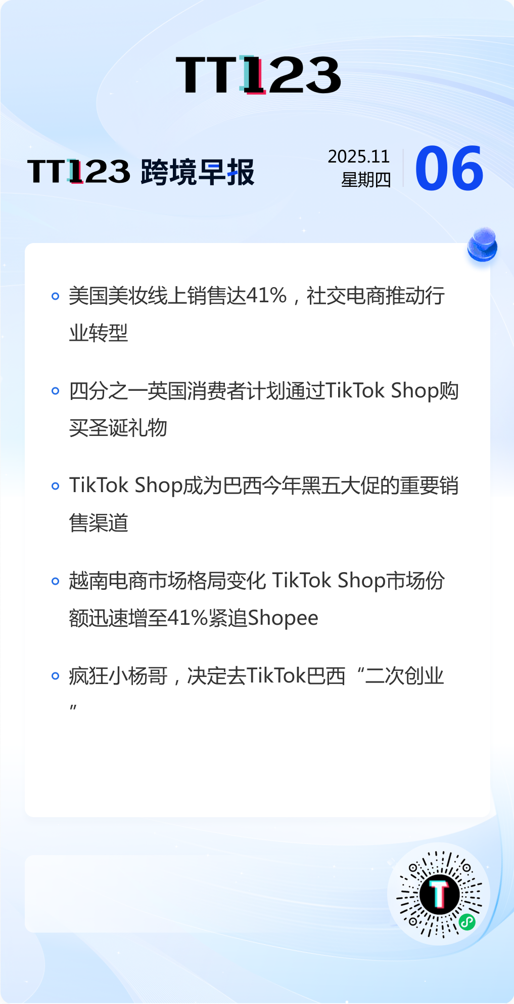 TT123获悉,11月5日消息,TikTok Shop在巴西已成为今年黑五大促的重要销售途径。自5月份该平台开放销售功能以来,卖家数量增加了11倍,并且9月份的销售额相比于5月份激增了26倍。参与黑五活动的卖家必须提供低于过去30天的折扣,并确保充足的库存。平台家居装饰类目负责人Gustavo Mondo指出,TikTok Shop通过“发现式购物”模式将娱乐与消费结合,四分之三的用户表示他们曾因观看平台内容而购买商品。值得注意的是,巴西TikTok用户的年龄结构从早期主要集中于年轻人,逐渐扩展至30岁以上人群成为消费的主力,且平台不向18岁以下用户展示购物功能。