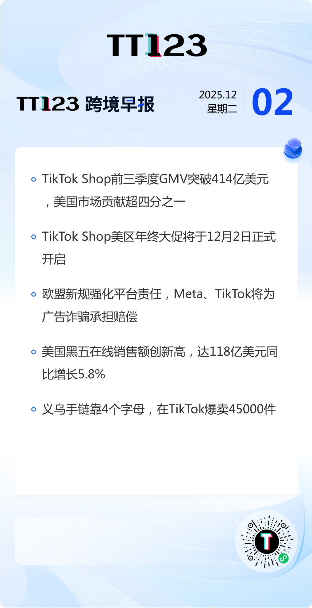 查看更多 TikTok Shop前三季度GMV突破414亿美元,美国市场贡献超四分之一