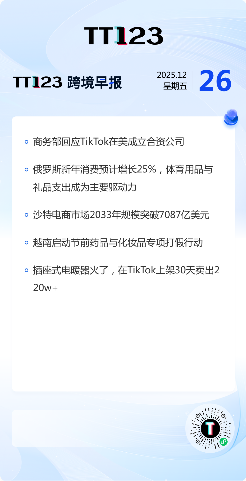 商务部新闻发言人何咏前12月25日在回答关于TikTok将在美成立合资公司的有关提问时说,中国政府希望企业达成符合中国法律法规、利益平衡的解决方案。何咏前表示,为落实中美两国元首通话重要共识,此前双方经贸团队在相互尊重、平等协商基础上,就以合作方式妥善解决TikTok等问题达成基本框架共识。希望美方与中方相向而行,切实履行相应承诺,为中国企业在美持续稳定运营提供公平、开放、透明和非歧视的营商环境,推动中美经贸关系稳定、健康、可持续发展。