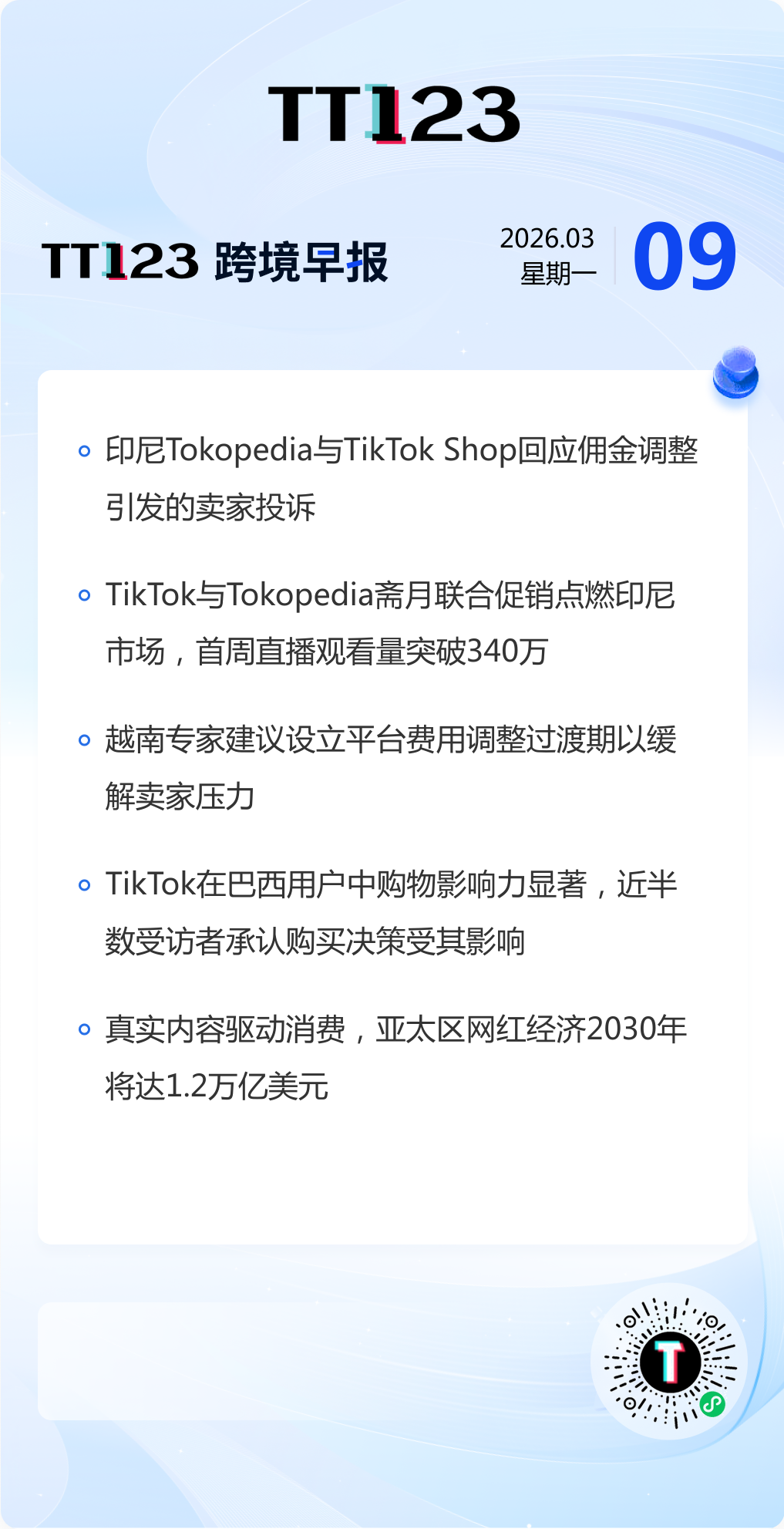 TT123获悉,在印尼中小微企业部收到大量卖家投诉后,电商平台Tokopedia与TikTok Shop就其佣金调整计划发布声明。平台方表示,此次佣金结构调整已于2026年2月13日生效,旨在帮助卖家,尤其是中小微企业,更高效地管理成本,同时通过鼓励使用直播、店铺广告等功能支持业务增长。平台说明,新佣金架构旨在更好地适应所售商品的多样化特点及平台商业参与者的需求,并承诺持续支持卖家在平台上的发展。印尼中小微企业部部长马曼·阿卜杜勒拉赫曼透露,其部门收到大量反馈,卖家认为平台收费过高,挤压企业利润。他指出,过去2%-5%或5%-10%的手续费仍在可接受范围内,但据报道,部分平台费用已升至20%-25%。